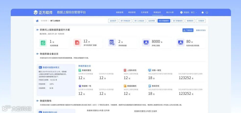 为响应教育部对数据质量的要求,平台新增了前置检测、质量规则配置和质量检测等功能。