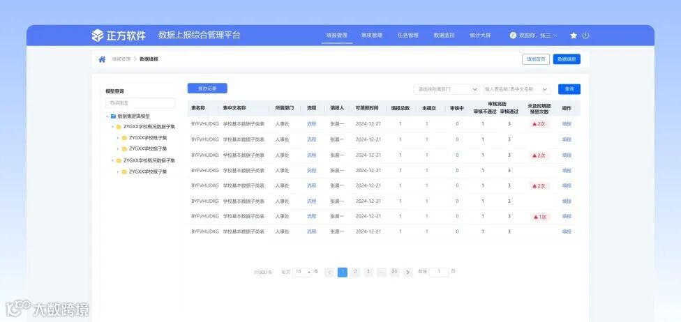 为响应高校需求,正方软件持续迭代升级数据上报平台。本次升级不仅支持多场景数据上报,还新增了智能质量检测、数据采集上报全流程监控、数据预警等功能,助力高校轻松应对复杂的数据上报需求。
