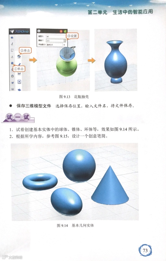 3D One作为全国各中小学普遍学习的三维创意设计软件,被列入最新版的江西省信息技术教材初中第六册,出现在学生们面前。