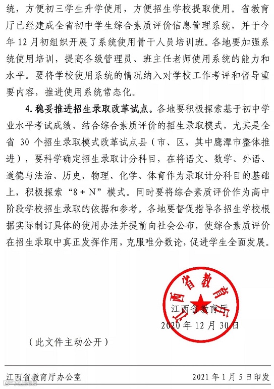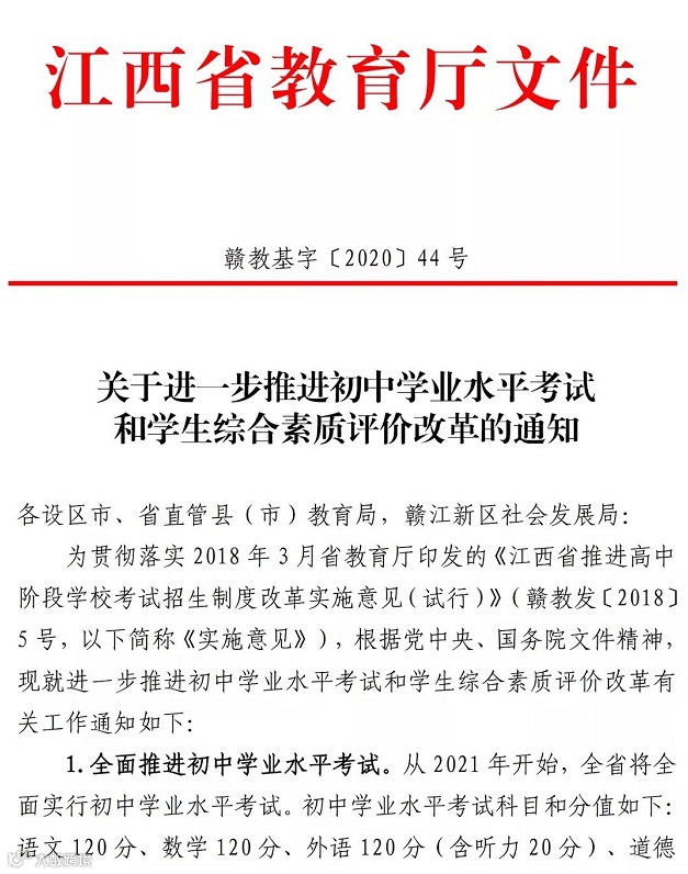 江西省教育厅发布了文件,从2021年开始,江西省将全面实行初中学业水平考试。