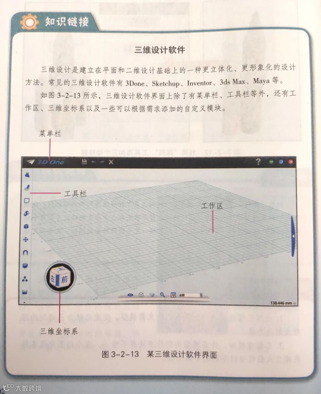 该教材带领学生们走进信息技术的世界,认识智能工具与智能机器人、感受物联网的魅力、体验三维设计。其中第三单元,让学生体验三维设计,以3D One作为主要教学工具。