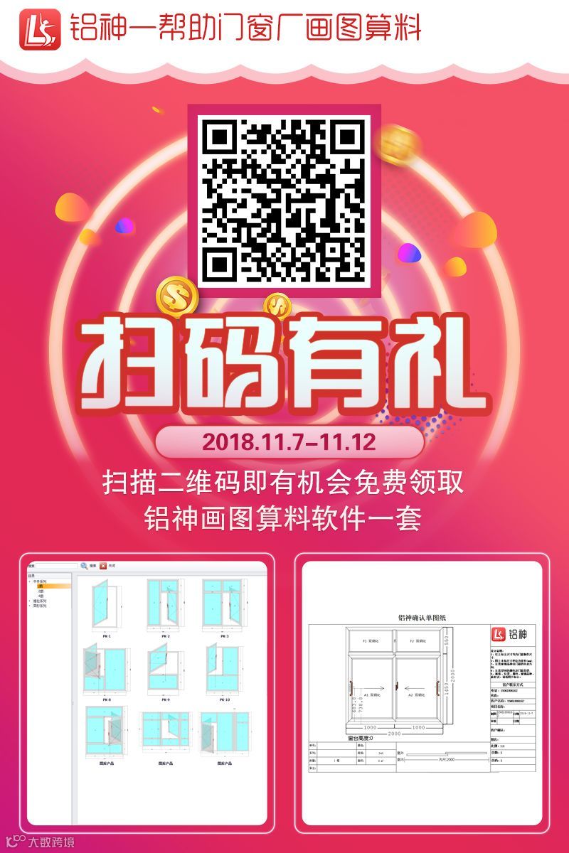 扫描二维码即有机会免费享受价值3600元铝神画图算料设计软件一套,不要错过~