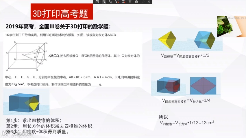 数学高考题中的3D打印