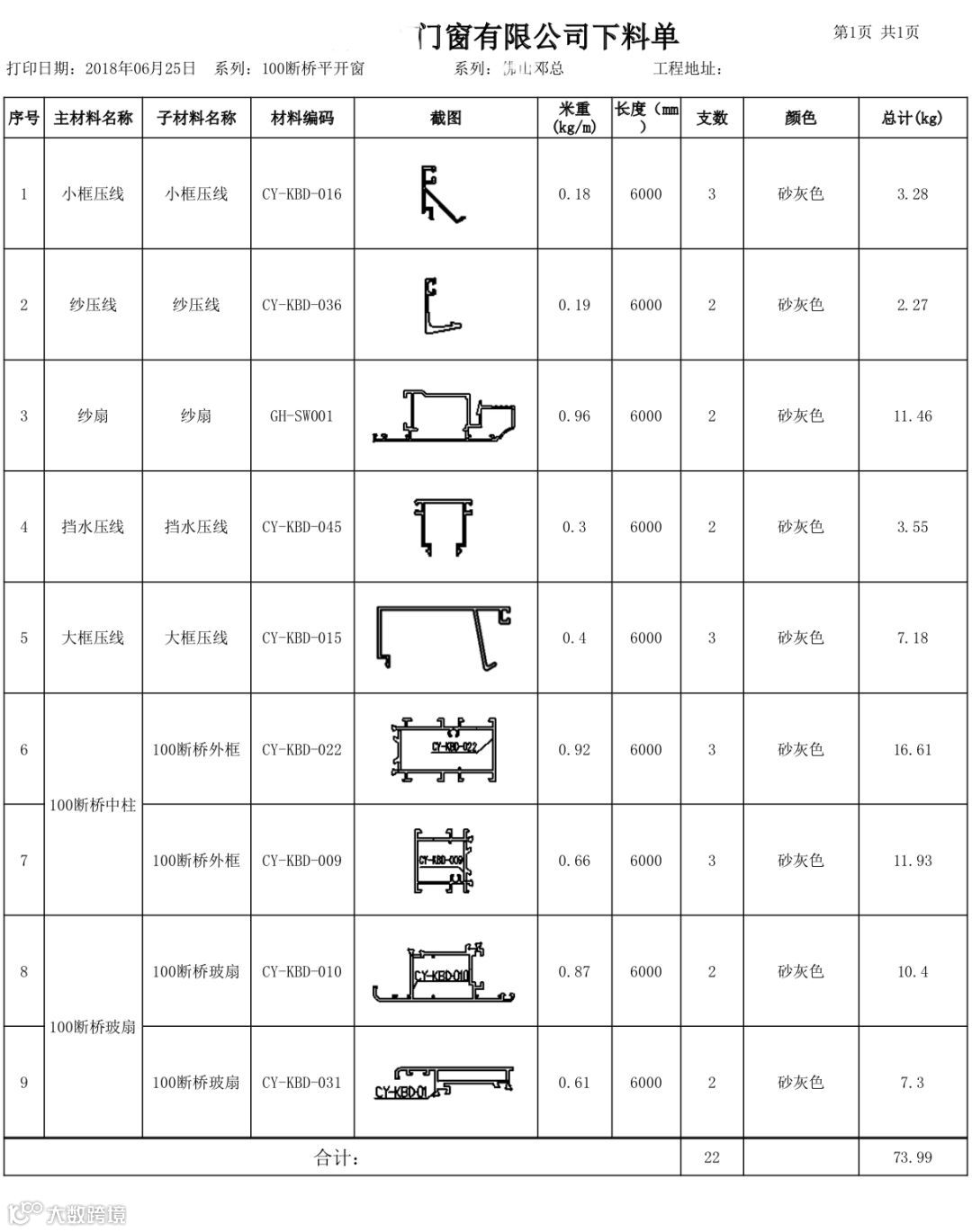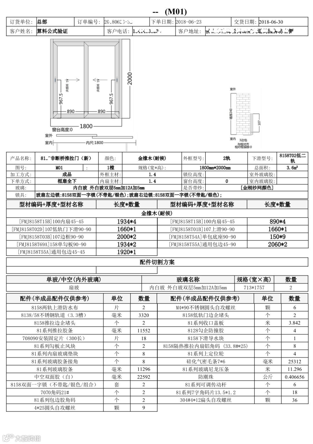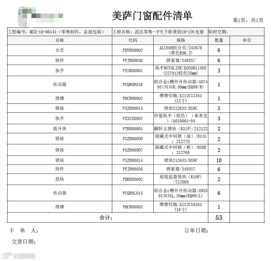 门窗确认单