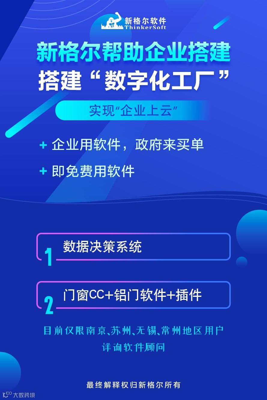 疫情期间,为了应对新型冠状病毒肺炎疫情,帮助中小企业复工复产共渡难关,地方政府也纷纷出台多项扶持政策帮助企业应对疫情,为了扶持家装行业,新格尔特争取门窗行业新老客户的“企业上云”不低于2万元政府补贴,协助客户实现三星上云企业,你用软件,政府买单。