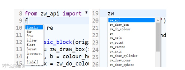 除此外,根据你输入的首字母,系统会自动联想列出Python库内的关键字和前文出现过的变量等,让你自动选择智能输入,简化你的操作。