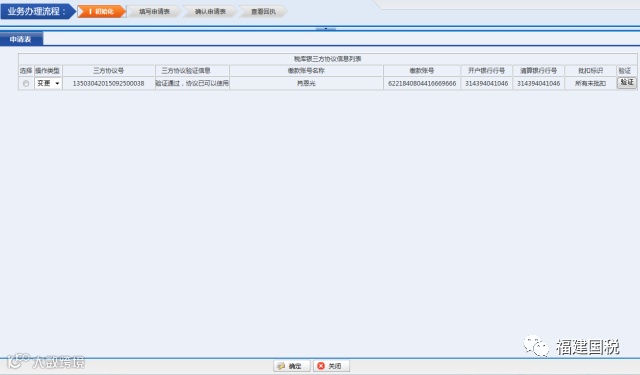 点击【进入办理】后打开税库银三方协议信息列表,如下图所示: