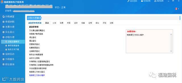 点击左侧“涉税办理”中的“涉税办理事项”菜单