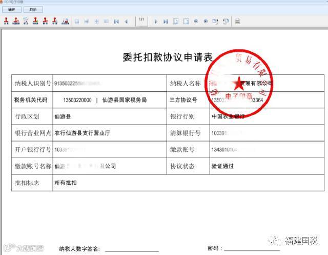 点击【确认】按钮,弹出PDF签章页面,用CA签章成功后,系统自动提交给税务人员进行审批。