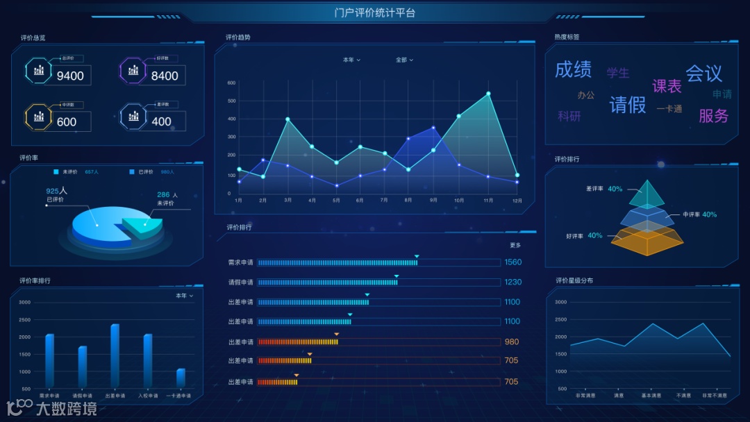 通过评价统计平台,可直接查看各类评价流程进度、结果,对评价数据进行可视化分析。