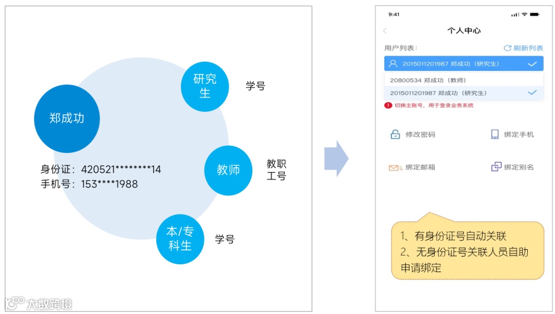 支持多身份多账号登录,避免手机多次绑定的同时,还支持界面自由切换。
