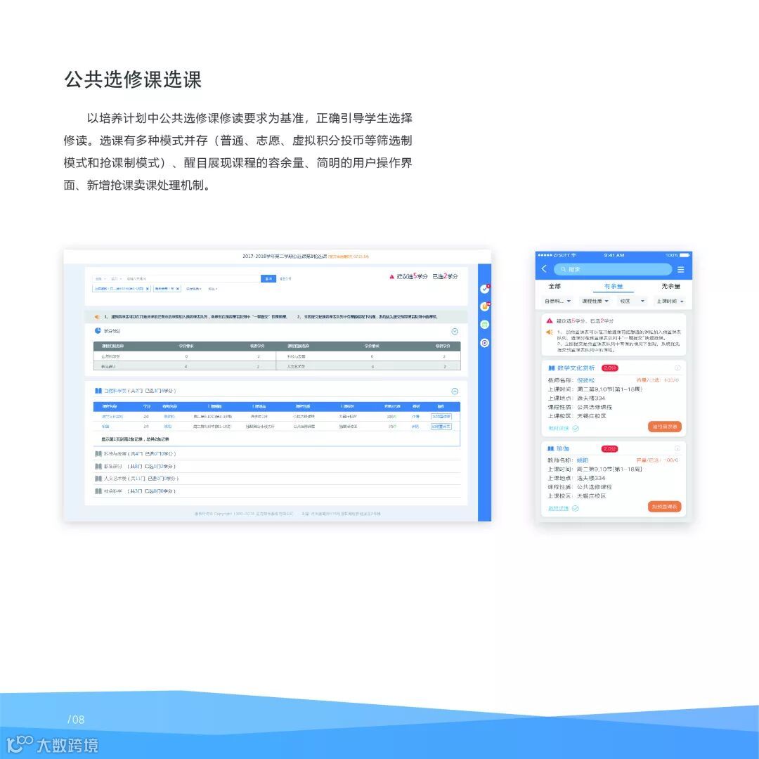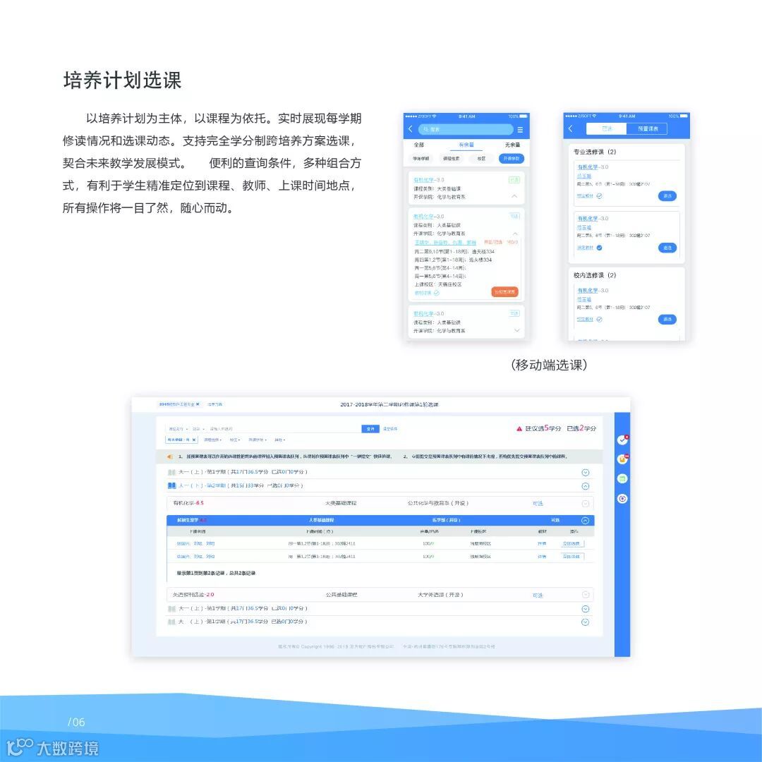 以培养计划为主体,以课程为依托。实时展现每学期修读情况和选课动态(移动端可以实时接收选课、退课、上课、考试、通知公告等消息提醒。)。支持完成学分制培养方案选课,契合未来教学模式发展模式。便利的查询条件,多种组合方式,有利于学生精致定位到课程、教师、上课时间地点,所有操作一目了然,随心而动。
