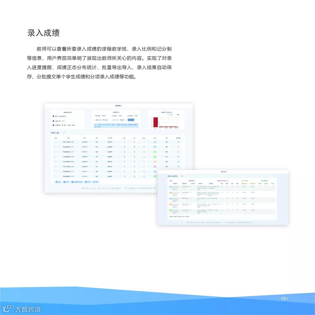 教师可以查看所有录入成绩的课程教学班、录入比例和记分制等信息,用户界面简单明了展现出教师所关心的内容。实现了对录入进度提醒,成绩正态分布统计,批量导出导入。录入结果自动保存,分批提交单个学生成绩和分项录入成绩等功能。