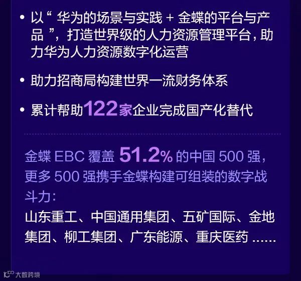 金蝶云·星瀚为大型企业EBC,涵盖财务云、人力云、供应链云、采购云、营销云、制造云等标准应用和特性。其中,星瀚人力云结合华为领先的全球人力资源管理实践,聚焦中国大企业人力资源管理的主要业务痛点,是满足大型企业主营业务的组织变革、创新业务灵活调整的全球化人力资源管理云服务应用产品;财务中台、EPM(企业绩效管理)、智慧财务差异化优势凸显,助力大型企业构建世界一流的财务系统和加速国产化替代。