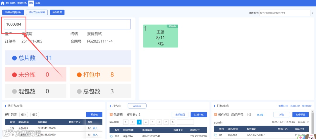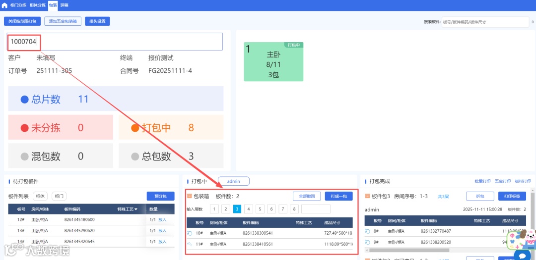 2、打包命令码里面新增一个【打包并打印四张】,条码编号为【1000704】,扫码/识别条码后完成当前包装箱打成一包,并连续打印当前包装标签四遍