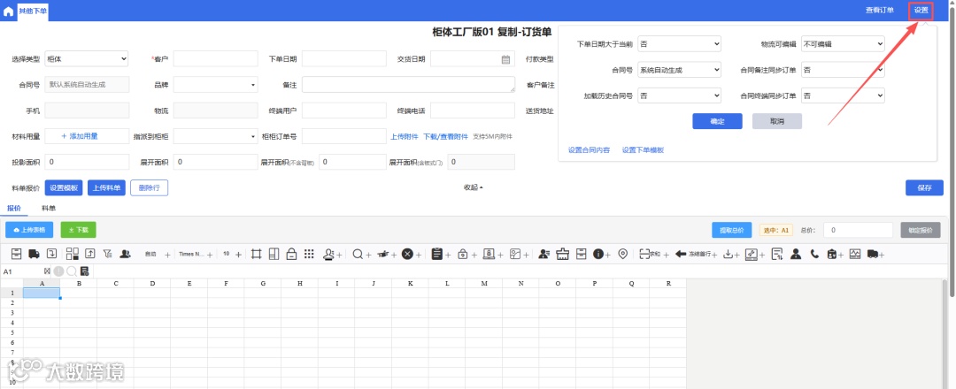 右上角设置按钮放开,可以自己设置下单模版与合同内容