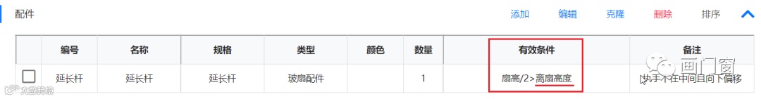 玻扇配件公式(仅内扇和对开扇),新增“重量”变量,表示扇的总重,用于如合页、滑撑等配件的条件编写