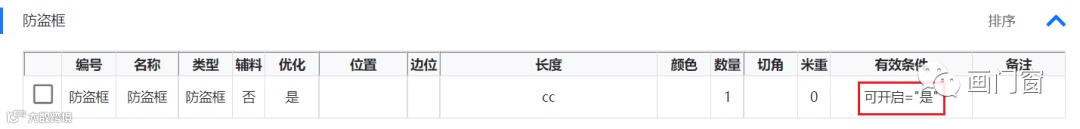 2、防盗框可设置是否可开启,并在防盗框的型材公式中可以使用”可开启”变量
