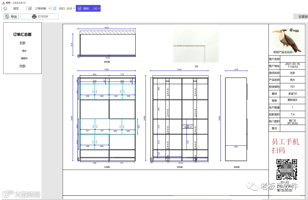 生产车间:点击安排生产后,员工通过打印出来的流转车间的CAD图纸上的二维码,让员工扫码可完成计件工资流程,财务也可实时看到