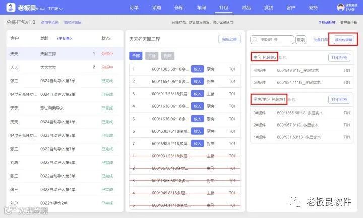 本期主要上线了订单--生产车间-打包-成品仓库-发货的主流程,并完善员工计件工资,打包添加包装箱和房间筛选的功能;同时也完善了老板良手机端,方便随时查单。