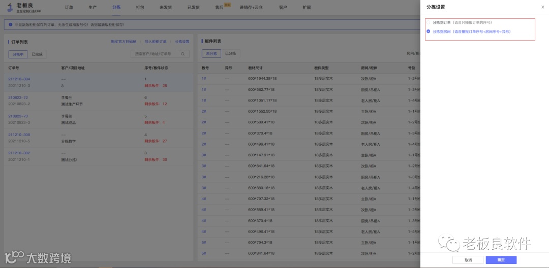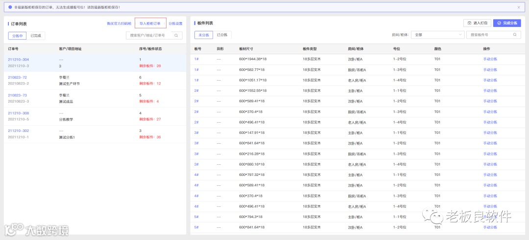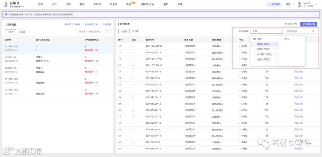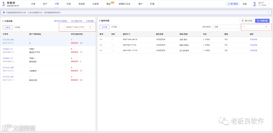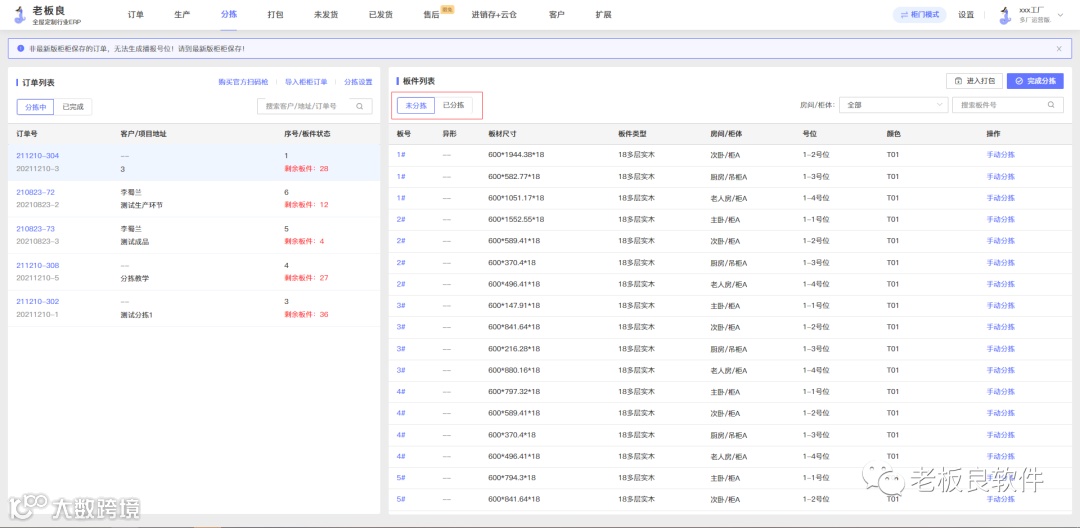 4.分拣-板件列表栏可选择查看未分拣/已分拣的板件