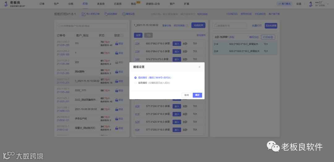 1.打包-播报设置页面下可设置语音播报方式(精细播报/简易播报)