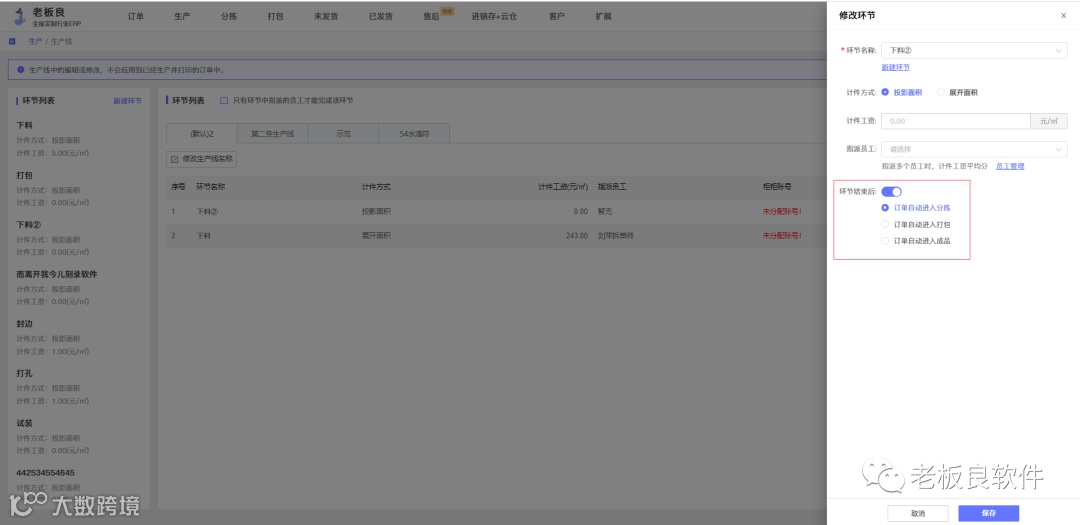1. 生产-生产线设置-编辑页面下新增订单自动进入分拣设置