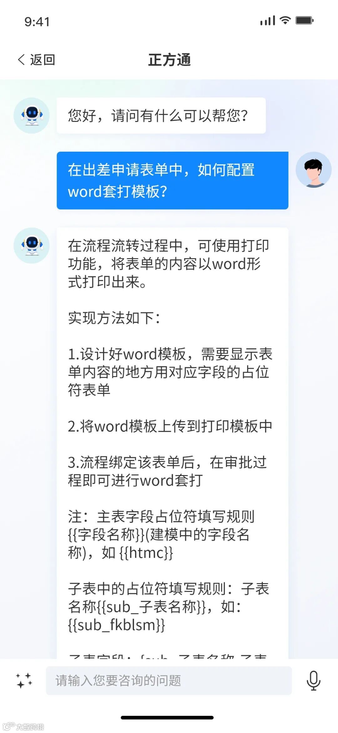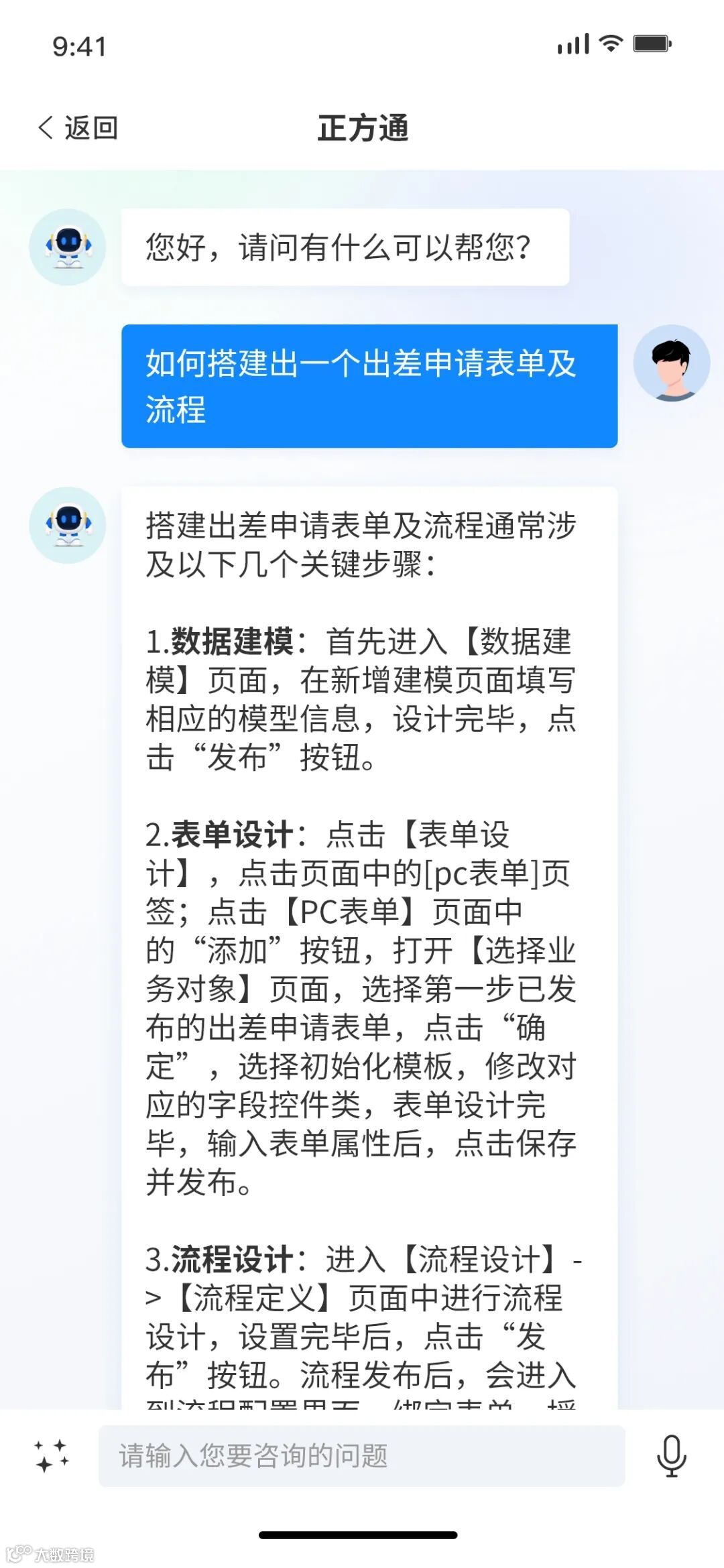 作为技术管理员,若想快速搭建出差轻应用,也可以与正方通对话来获得搭建指导。