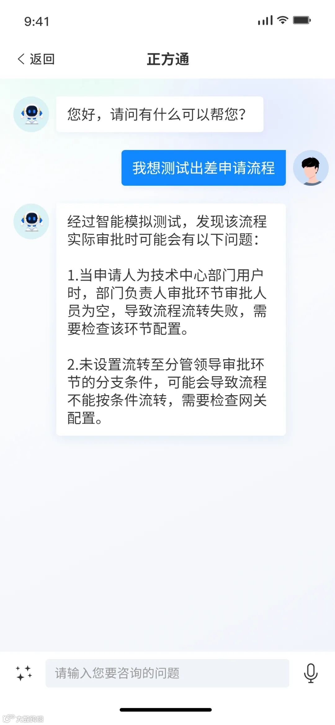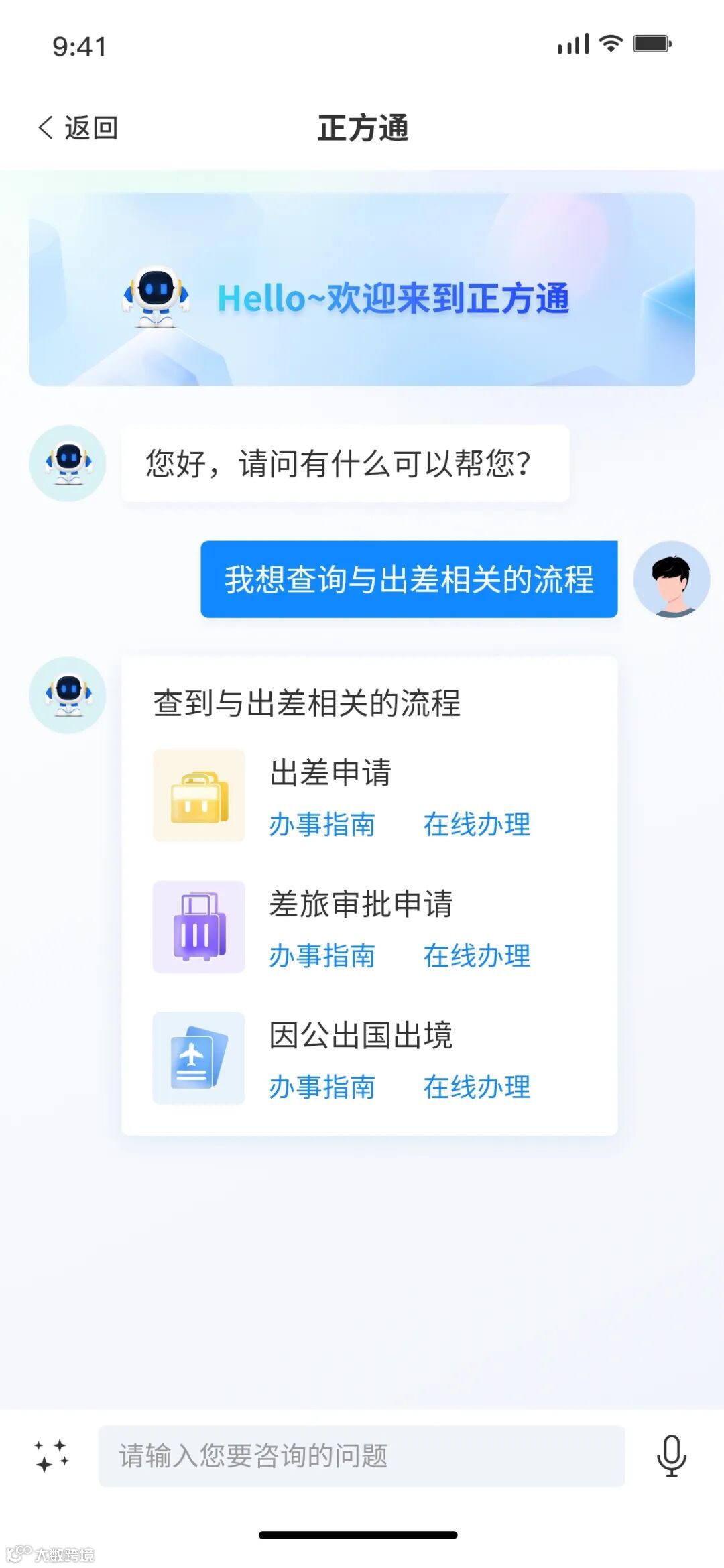 普通用户通过询问正方通出差的相关流程,即可获得内容推荐。