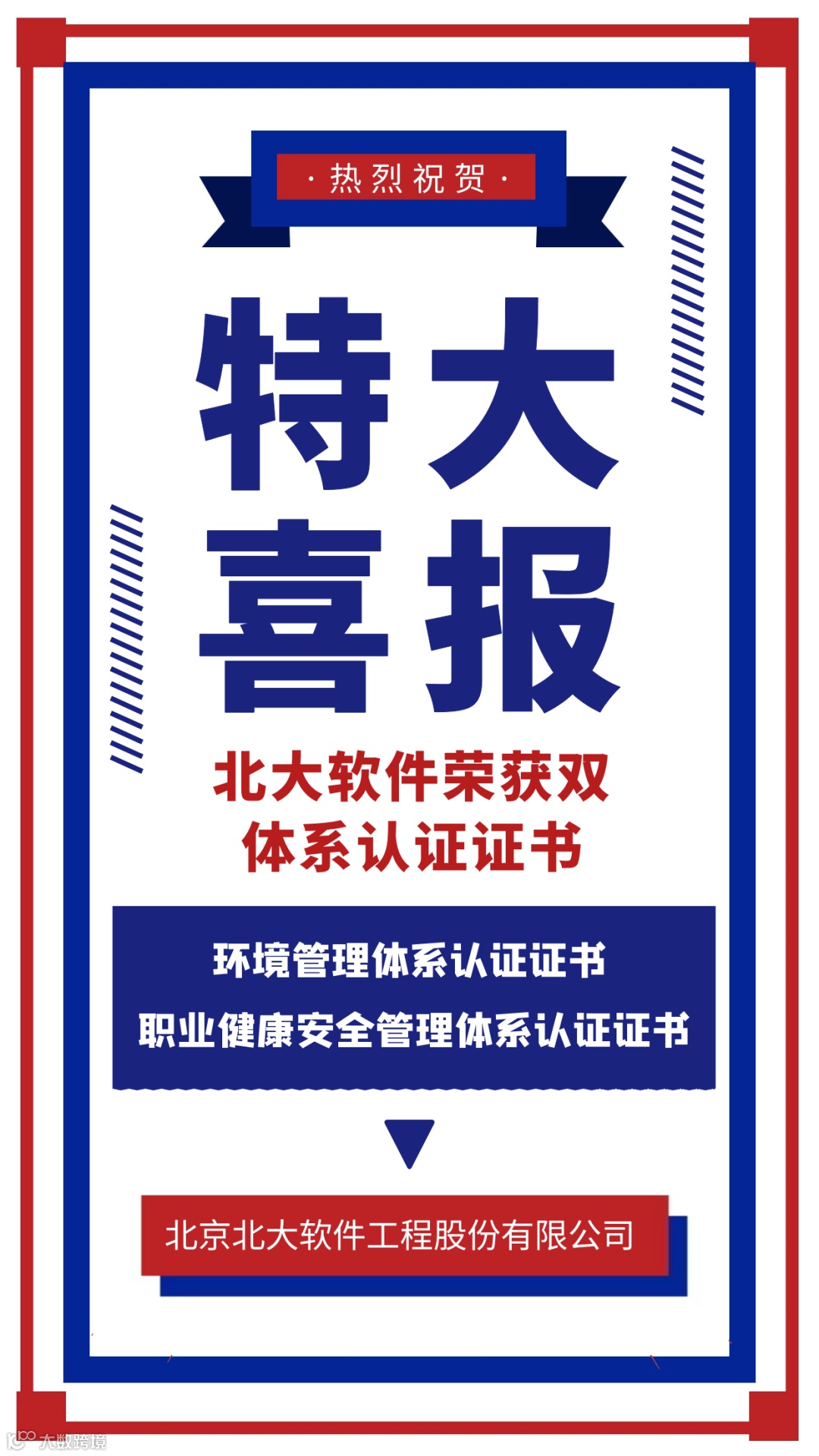 近日,北大软件顺利通过环境及职业健康安全管理体系双体系认证,此次通过认证有助于公司持续改进完善管理方式,不断提升产品品质和客户服务,增强企业竞争实力,为公司顺利完成各项任务目标夯实基础。