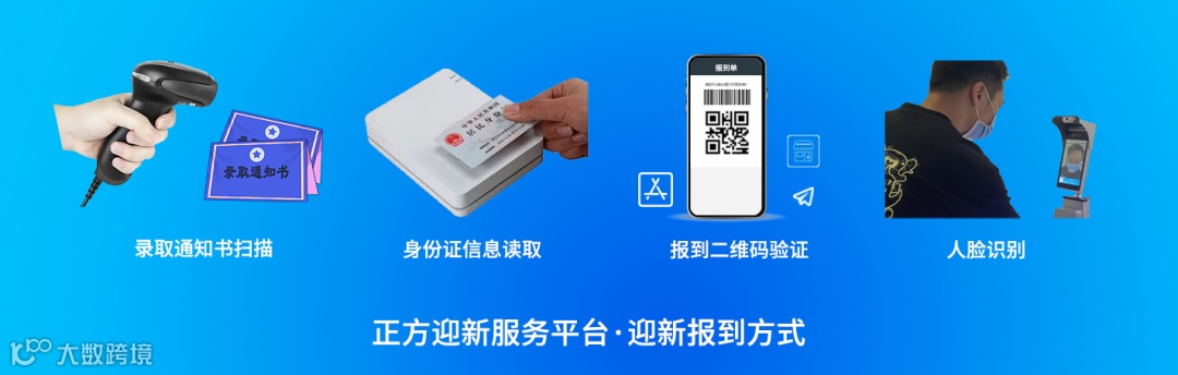 刷脸、刷证、刷码,哪个方便刷哪个。正方数字化迎新服务平台,提供了单一和多项组合报到方式。