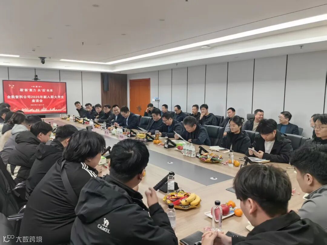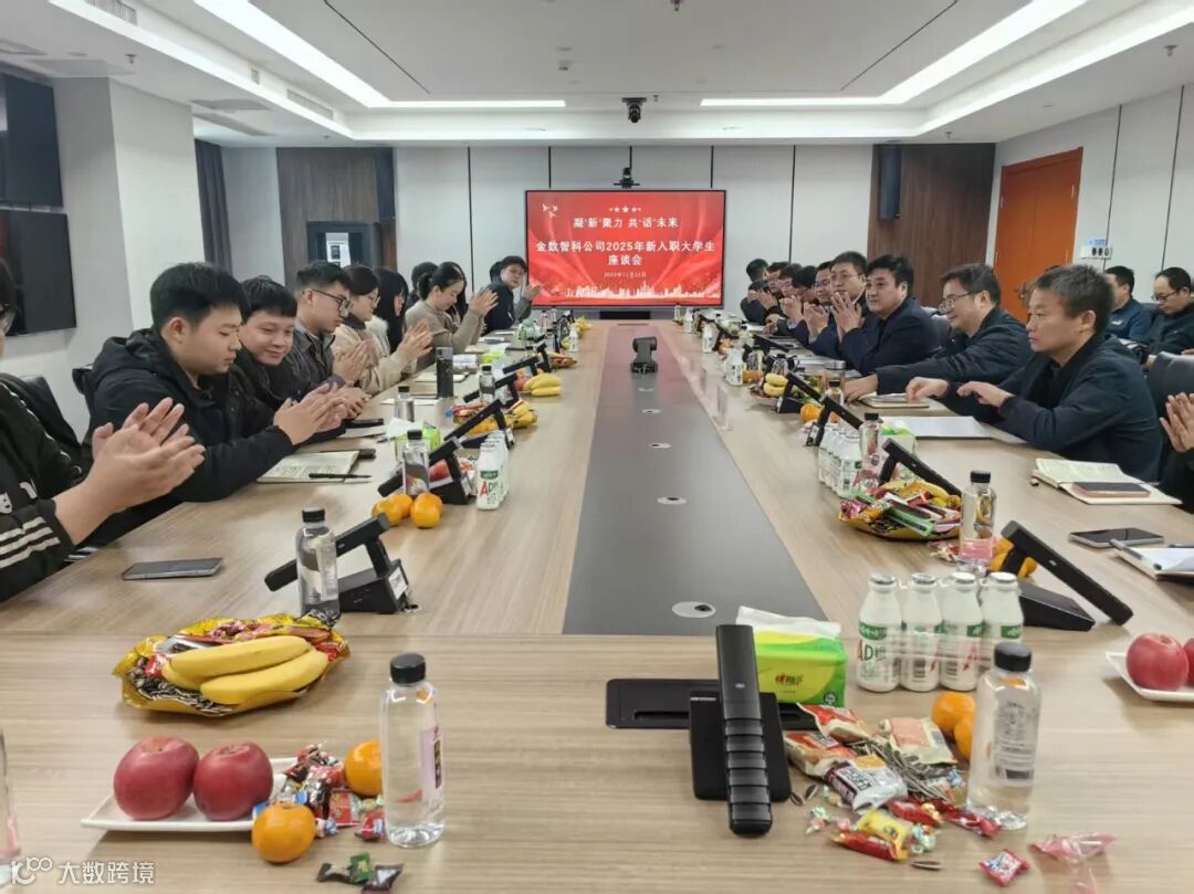 为增强新入职大学生归属感,激发青年职工干事创业热情,近日,金数智科召开2025年新入职大学生座谈会。公司党委书记、董事长黄杰,党委副书记、经理刘晨阳出席会议并讲话,工会主席、副经理房奇文主持会议,公司副经理施政、相关部门负责人、4名往届大学生代表及23名新入职大学生参会交流。