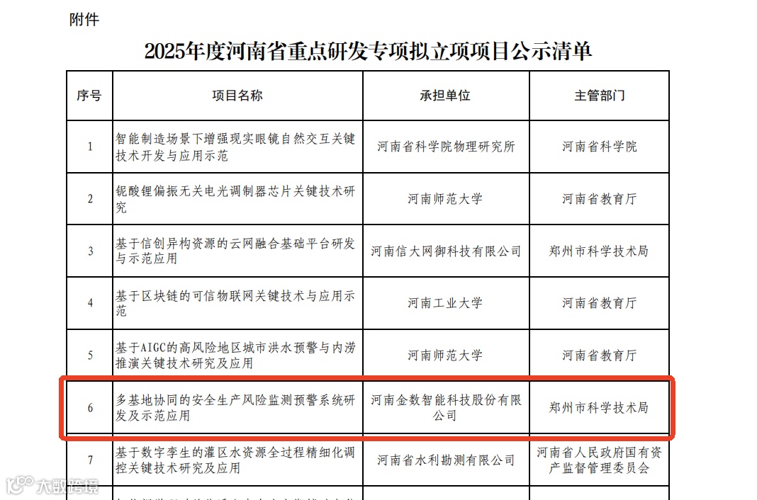 此次成功入选,标志着金数智科在安全生产技术研发领域再获认可,为河南钢铁集团安全生产提供了技术支撑。下一步,公司将以这次入选为契机,进一步强化企业创新主体地位,加强产学研合作,持续激发企业创新活力,积极攻克安全生产领域关键技术难题,促进更多科技成果在金数智科落地生根、开花结果,为河南钢铁集团乃至河南冶金行业安全生产作出新的贡献。