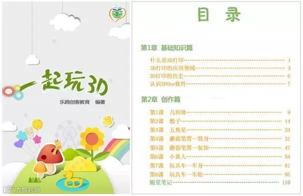 亮点:本教材共有上下两册,并附有视频详解,还有PPT课件等一系列课程体系,是一本适合小学生的3D打印应用教材。