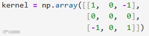 观察由卷积核处理后的矩阵,不难看出图片边缘被模糊化了,而图像上部的特征更加显著,这就是一个用于突出图像上部特征的卷积核。