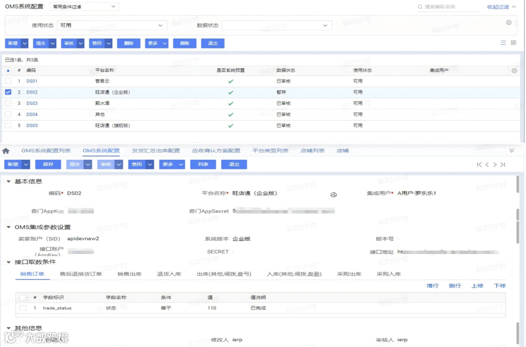 1、全渠道业财一体化,告别数据割裂:通过标准化接口配置,高效集成各主流电商OMS系统(如:管易-CERP、旺店通企业版、旺店通旗舰版、聚水潭、吉客云等),通过接口拉取OMS系统的单据,并根据业务数据转换规则,与供应链云、财务云相关业务单据实现无缝和自动化集成。