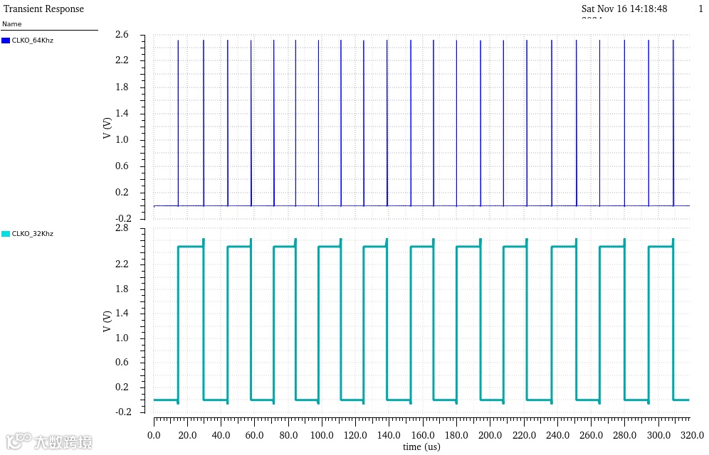 VCO的时钟检测模块可以使整个VCO模块的时钟输出在振荡器起振若干个周期后再输出,如图18所示。