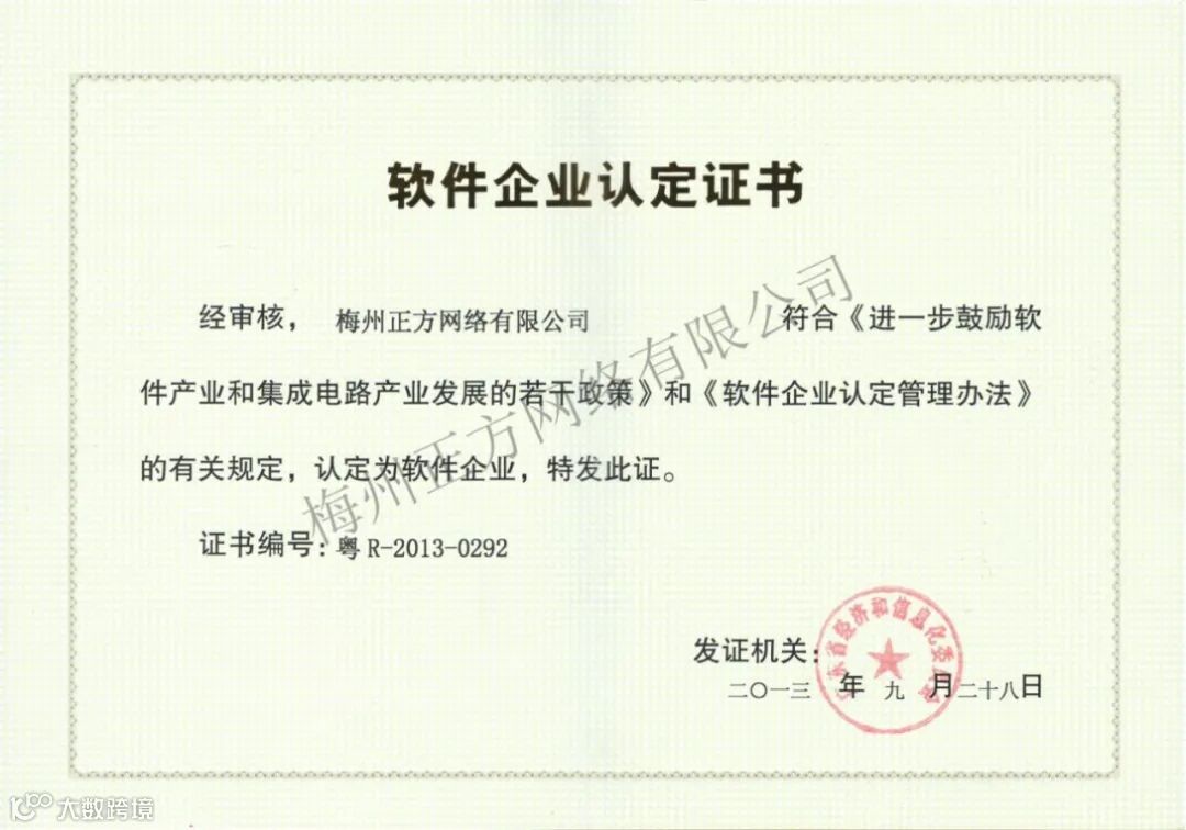 梅州正方网络有限公司成立于2008年5月16日,注册资金1024万,是一家集应用软件开发、软件定制和提供技术咨询与服务为一体的软件企业,公司专注政务信息化领域,专业于政府机构、企事业单位的信息化建设,以先进的技术、产品、服务为用户提供优秀的电子政务、企事业应用软件及信息化解决方案。