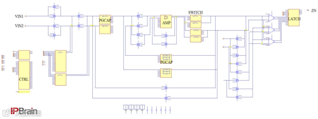 具体到电路功能模块,该芯片由SENSING_MODULE(SensingModule),VOL_GEN(Voltage Generator),AMP(Amplifer),ADC(Analog Digital Converter), DAC(Digital Analog Converter),COMP(Comparator), SC,DETECT和PAD等多个模块组成。