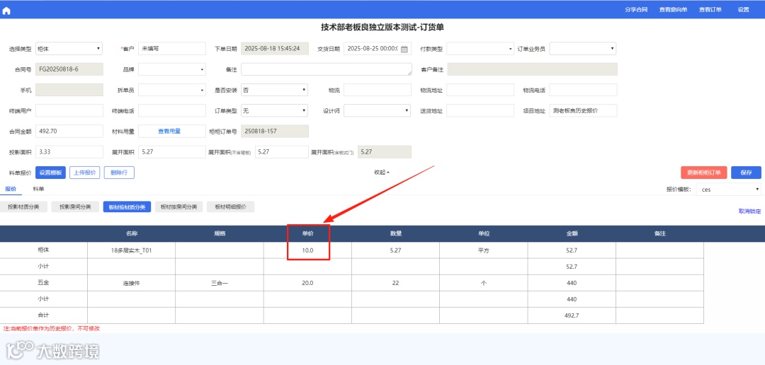 柜柜端修改报价后,老板良端变成历史报价,历史报价不可在老板良端修改