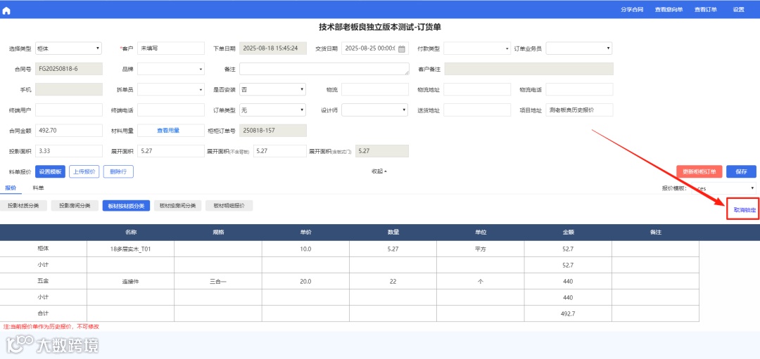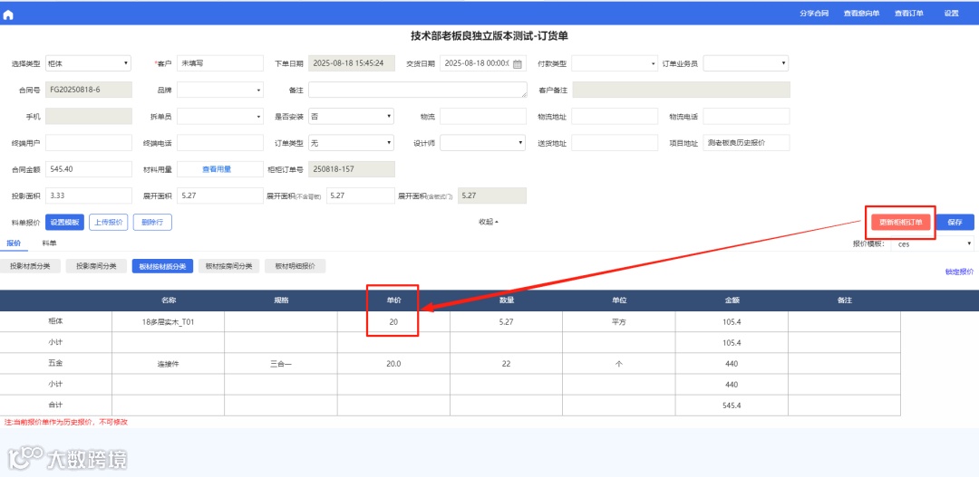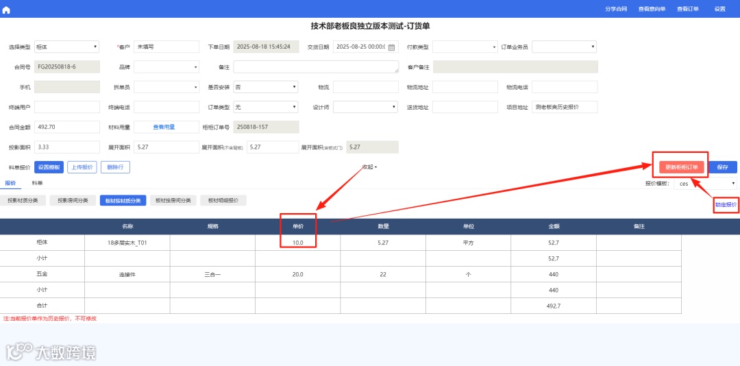 老板良端取消锁定报价,点击更新柜柜订单,老板良端报价更新为柜柜端报价