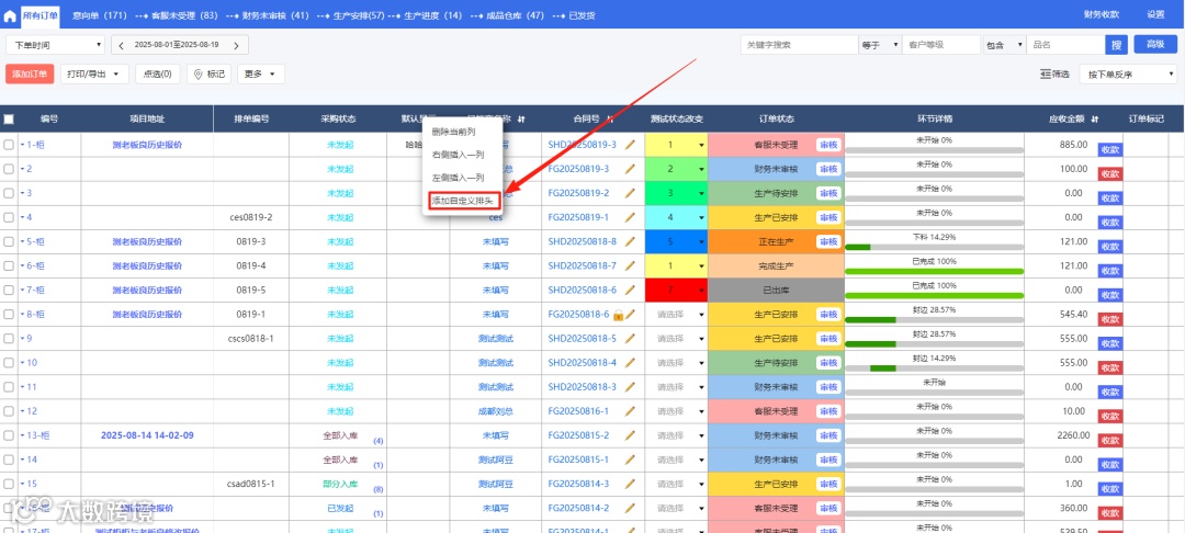 隐藏意向单新增自义定排头入库,改为所有订单页面右击组排头新增自义定排头