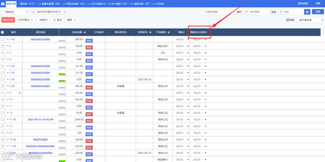 所有订单页面新增自义定排头后,其他页面组排头设置均增加自义定排头