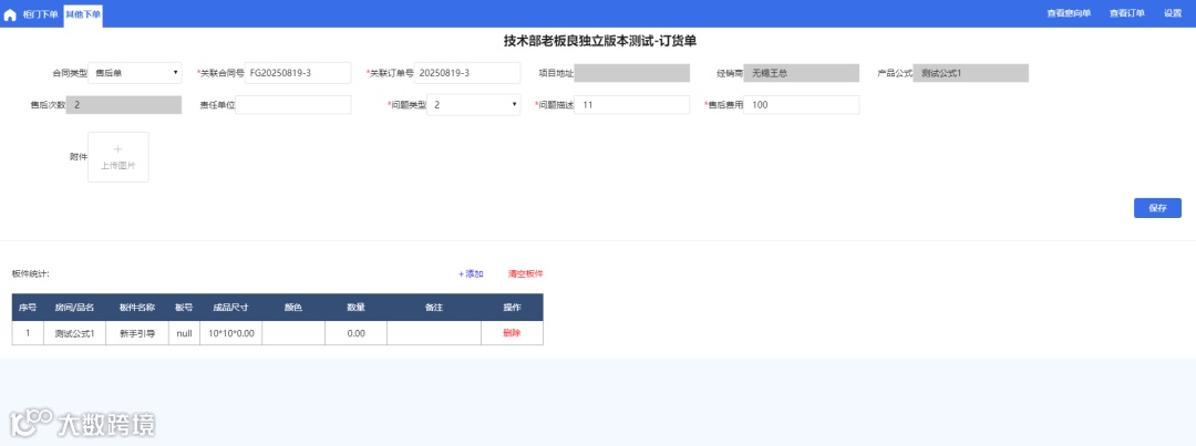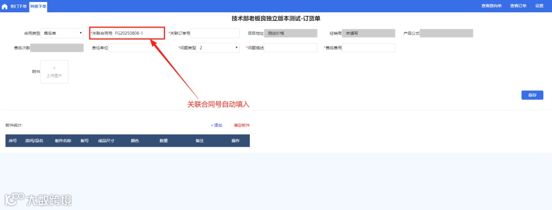 下方为板件统计,可手动添加售后板件明细
