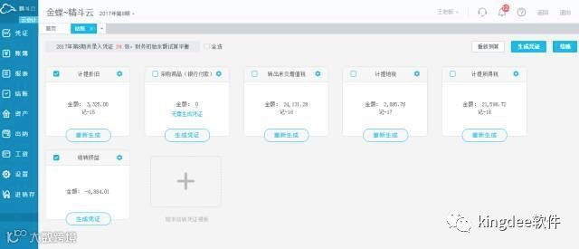 在结账时,我们勾选需要生成凭证的项目,点击右上角的【生成凭证】按钮,即可自动生成结转损益、固定资产折旧、期末调汇等凭证,不用再手工录入和核对数据,升了会计记账的效率。