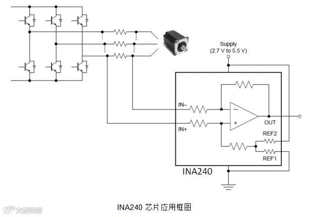 在倡导绿色环保的今天,节能家电更受人们欢迎,而改善日常家电比如空调、电风扇中电机的工作效率是提升家电效率重要环节。为了保证电机在适当效率下运行,检测相电流后反馈至控制器调整工作状态,是实现较佳的电机性能的重要手段。电机驱动电路产生的脉宽调制信号PWM用于控制电机运行,调制信号在电平转换时可能会产生较大的阶跃影响,采用高共模抑制的放大器可以降低输出干扰并快速稳定。