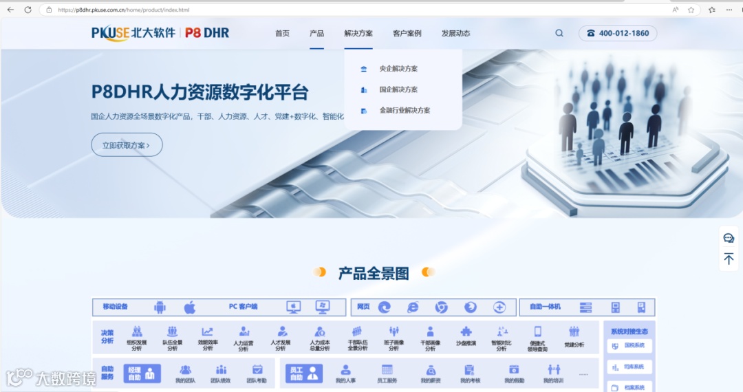 为了给用户提供更优质的服务和体验,北大软件作为专注服务国央企人力资源一体化服务商,随着P8DHRv8.4新版本正式发布,近日同步重磅推出全新品牌子网站 https://p8dhr.pkuse.com.cn/ 。网站不仅界面简洁美观,更重要的是全方位向央国企客户展示核心产品P8DHR产品特性、解决方案、客户案例及发展动态,为央国企客户提供全面智能化的人力资源解决方案。