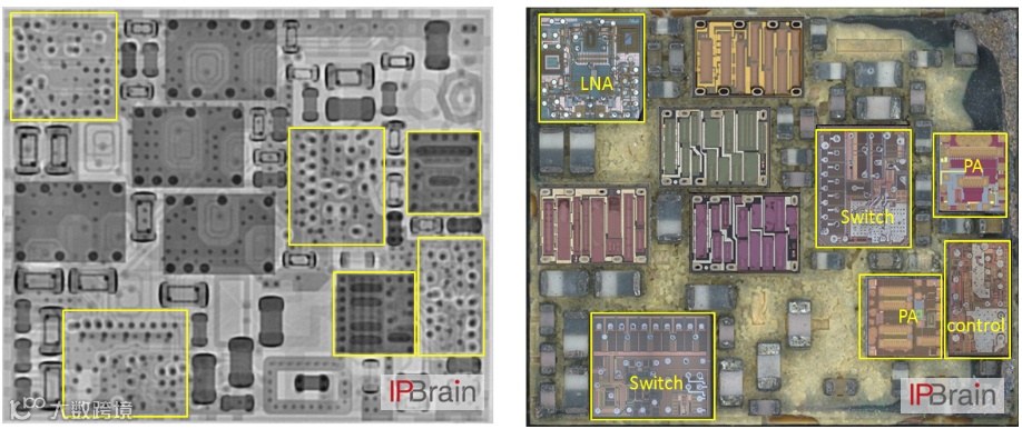 某射频前端芯片的X射线图和开盖图(图源:IPBrain集成电路大数据平台)