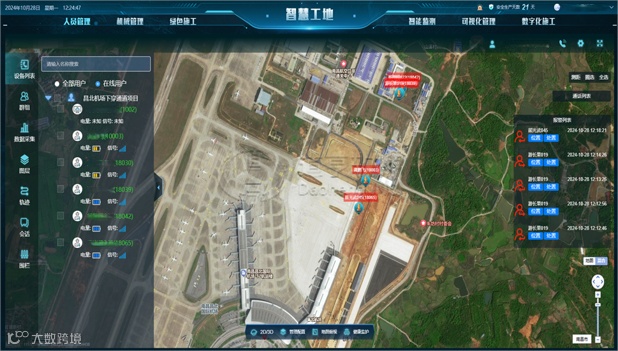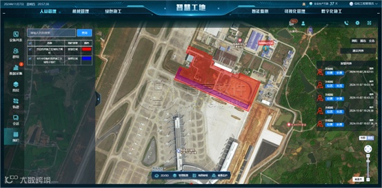 道亨软件智慧机场团队严格遵循《运输机场不停航(运)施工管理办法》等规范要求,综合运用AI视频分析、电子围栏、高精度北斗定位、物联网、数字化施工等技术手段,建设不停航(运)施工现场智慧工地管理平台,实现对飞行区货运机坪现场施工的全要素、全环节、全生命周期的实时监测和协同管控。