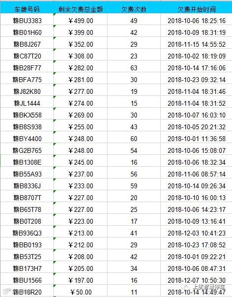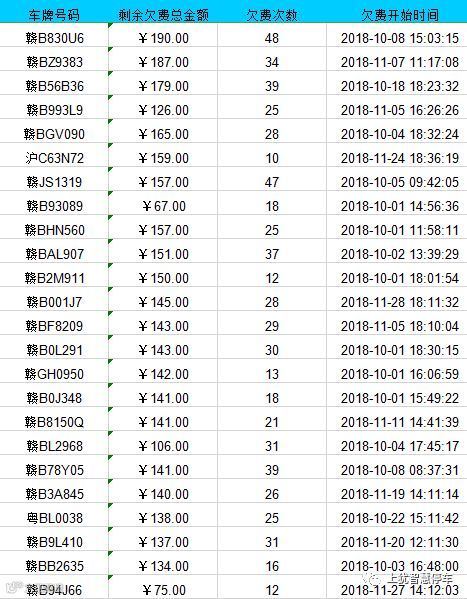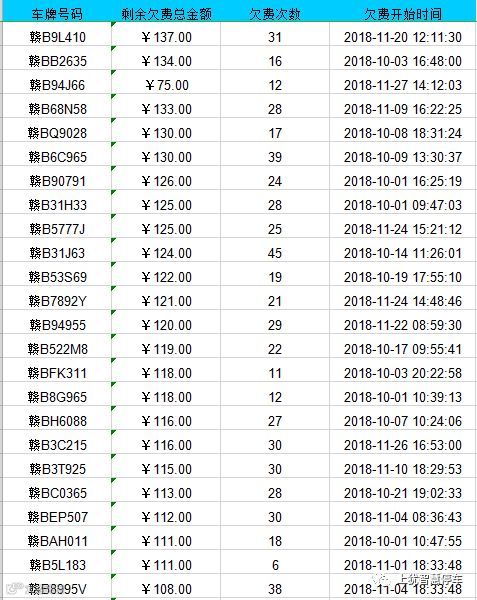 欠费一百元以上的车牌已公布,一起看看都有哪些车牌号码吧